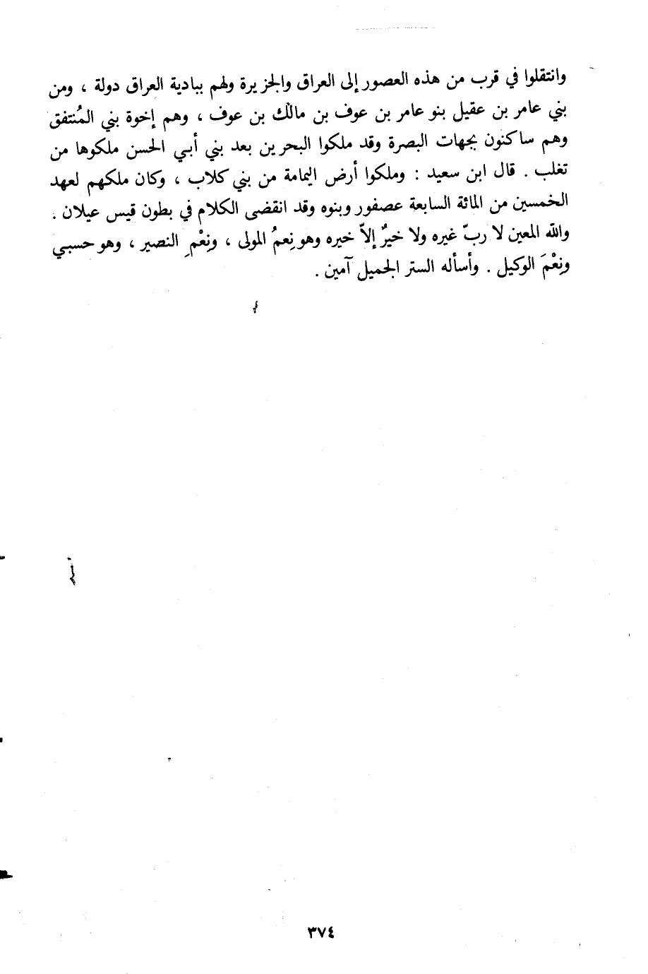 وانتقلوا في قرب من هذه العصور إلى العراق والجزيرة ولهم ببادية العراق دولة، ومن بني عامر بن عقيل بنو عامر بن عوف بن مالك بن عوف، وهم إخوة بني المنتفق وهم ساكنون بجهات البصرة وقد ملكوا البحرين بعد بني أبي الحسن ملكوها من تغلب. قال ابن سعيد: وملكوا أرض اليمامة من بني كلاب، وكان ملكهم لعهد الخمسين من المائة السابعة عصفور وبنوه وقد انقضى الكلام في بطون قيس عيلان.