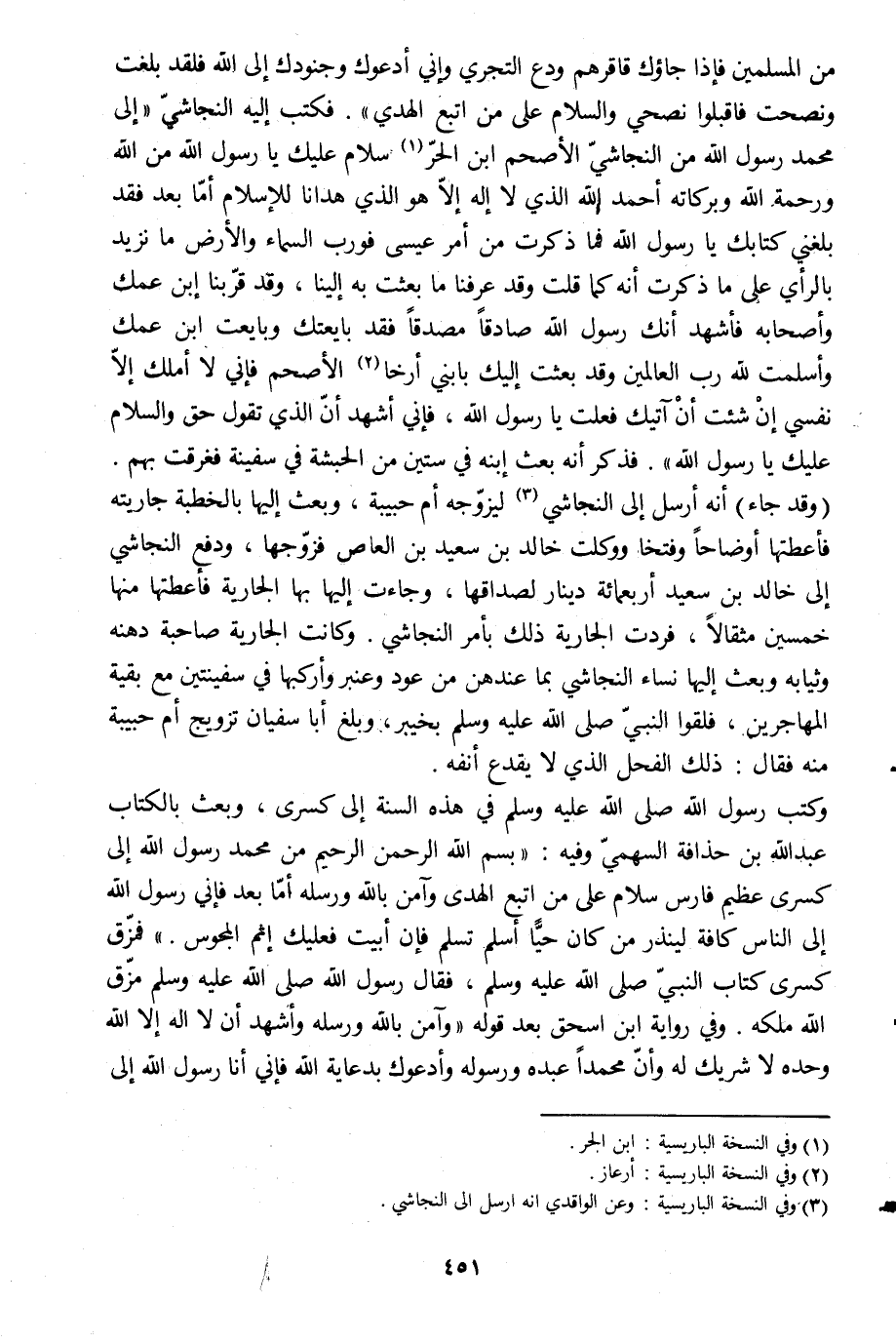 [3] وفي النسخة الباريسية: وعن الواقدي انه أرسل الى النجاشي.