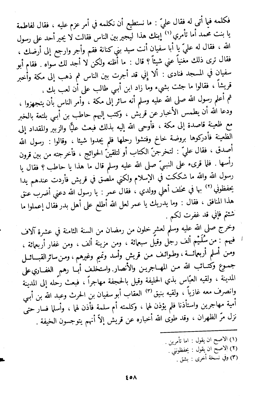 ثم أعلم رسول الله صلى الله عليه وسلم أنه سائر إلى مكة، وأمر الناس بأن يتجهزوا، ودعا الله أن يطمس الأخبار عن قريش، وكتب إليهم حاطب بن أبي بلتعة بالخبر مع ظعينة قاصدة إلى مكة، فأوحى الله، إليه بذلك فبعث عليّا والزبير والمقداد إلى.