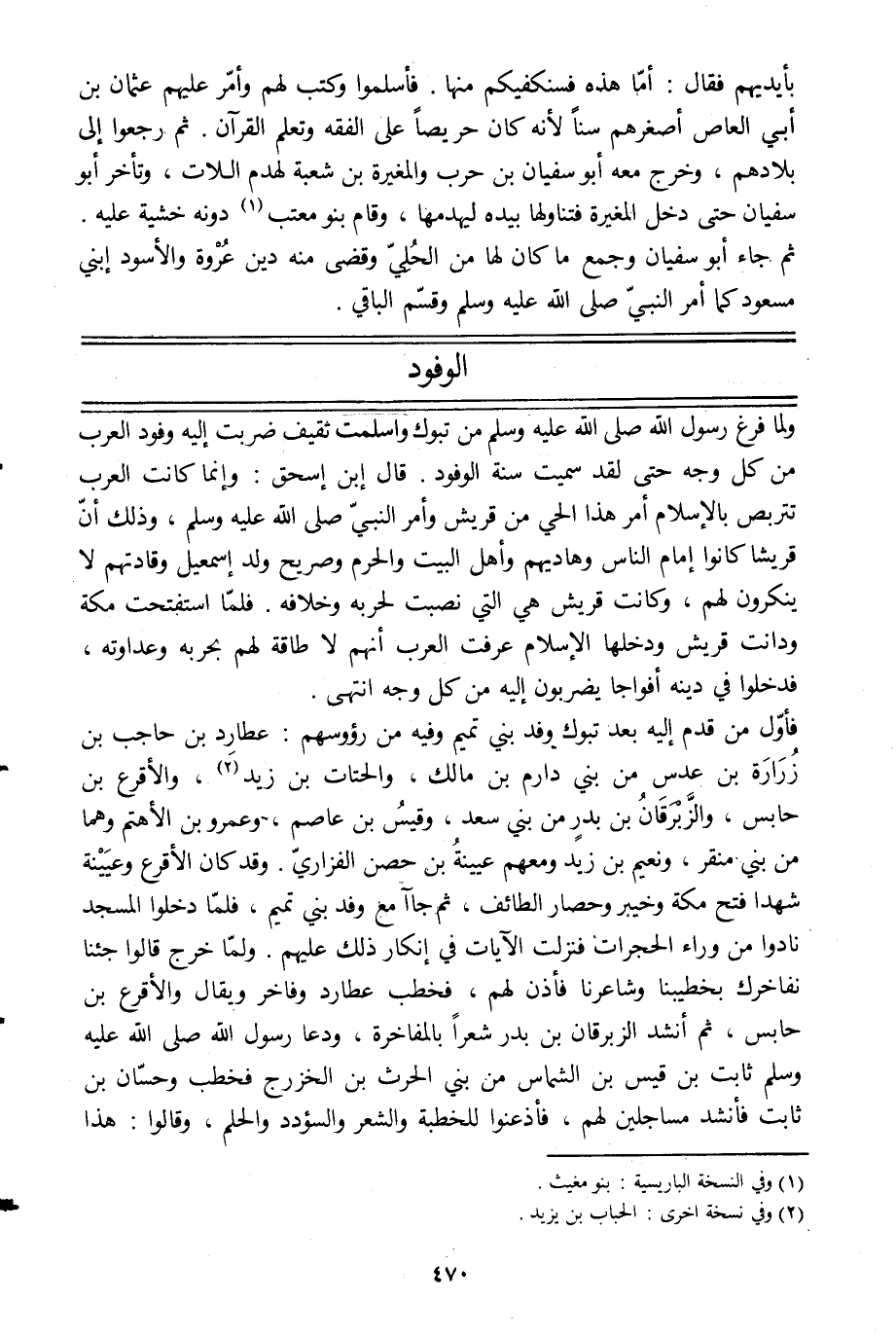 ولما فرغ رسول الله صلى الله عليه وسلم من تبوك وأسلمت ثقيف ضربت إليه وفود العرب من كل وجه حتى لقد سميت سنة الوفود. قال ابن إسحاق: وإنما كانت العرب تتربص بالإسلام أمر هذا الحي من قريش وأمر النبيّ صلى الله عليه وسلم، وذلك أنّ قريشا كانوا إمام الناس وهاديهم وأهل البيت والحرم وصريح ولد إسماعيل وقادتهم لا ينكرون لهم، وكانت قريش هي التي نصبت لحربه وخلافه. فلمّا استفتحت مكة ودانت قريش ودخلها الإسلام عرفت العرب أنهم لا طاقة لهم بحربة وعداوته، فدخلوا في دينه أفواجا يضربون إليه من كل وجه انتهى.