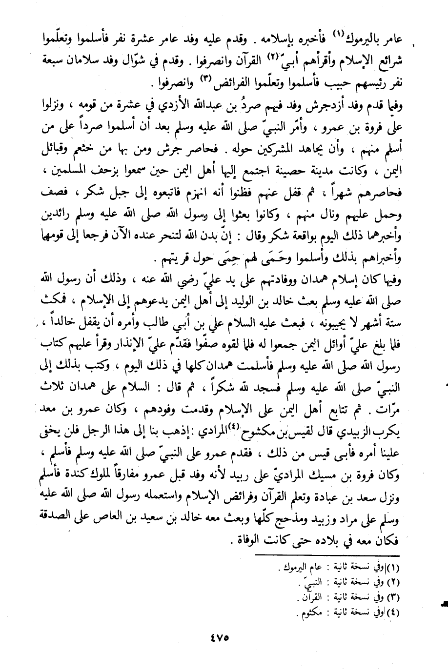 عامر باليرموك [1] فأخبره بإسلامه. وقدم عليه وفد عامر عشرة نفر فأسلموا وتعلّموا شرائع الإسلام وأقرأهم أبيّ [2] القرآن وانصرفوا. وقدم في شوّال وفد سلامان سبعة نفر رئيسهم حبيب فأسلموا وتعلّموا الفرائض [3] وانصرفوا.