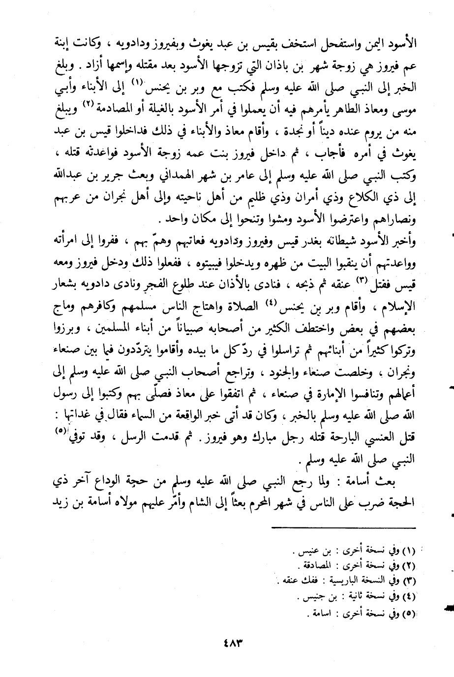 قتل العنسيّ البارحة قتله رجل مبارك وهو فيروز. ثم قدمت الرسل، وقد توفي [5] النبي صلى الله عليه وسلم.