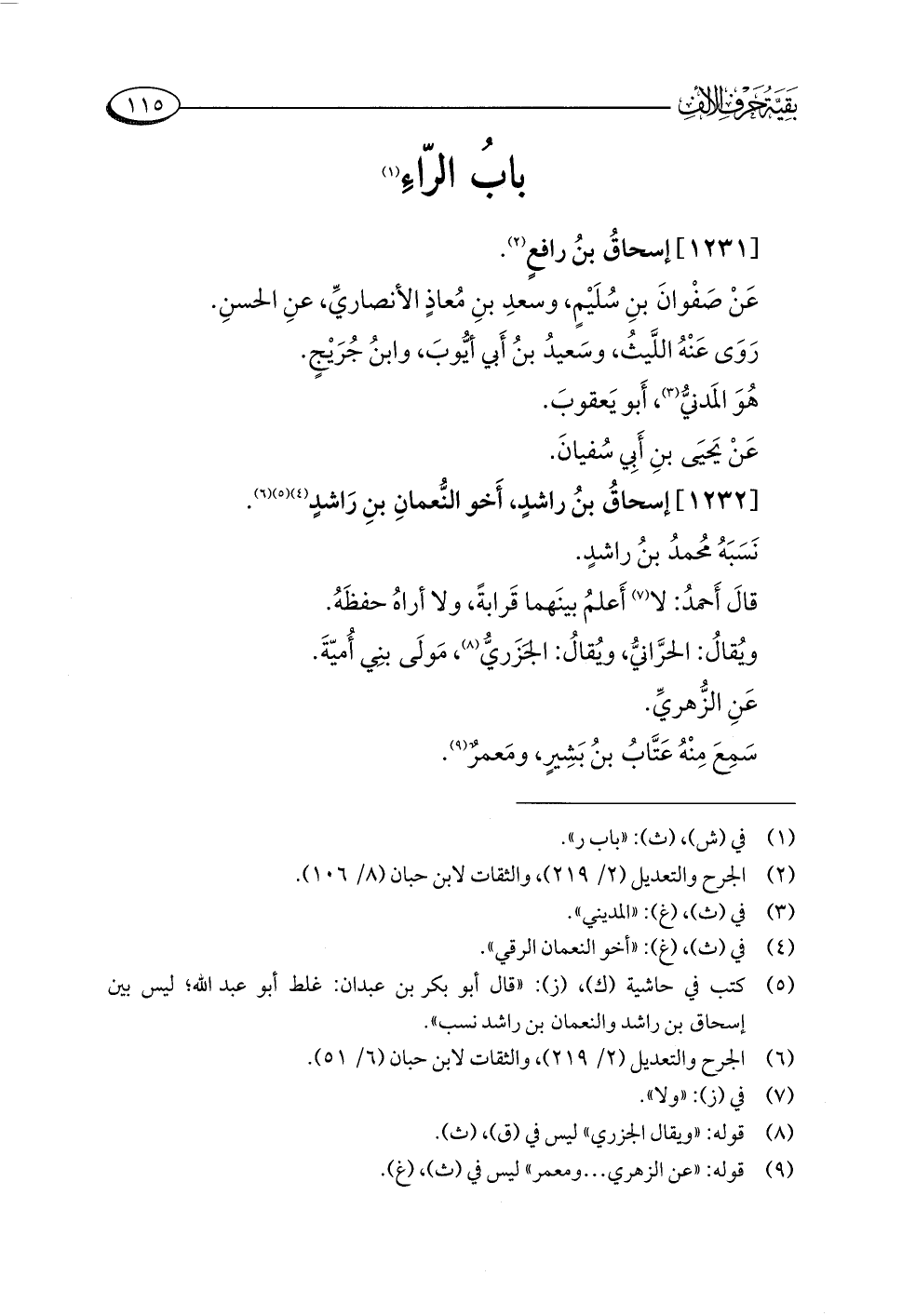 (¬٥) كتب في حاشية (ك)، (ز): "قال أبو بكر بن عبدان: غلط أبو عبد اللَّه؛ ليس بين إسحاق بن راشد والنعمان بن راشد نسب".