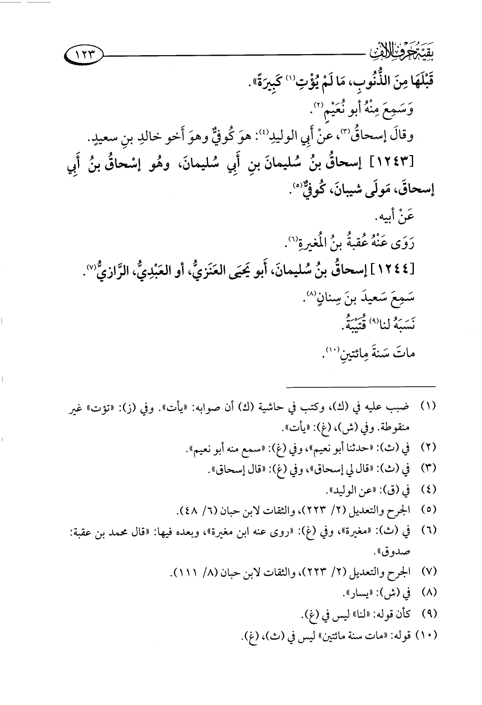 (¬٧) الجرح والتعديل (٢/ ٢٢٣)، والثقات لابن حبان (٨/ ١١١).