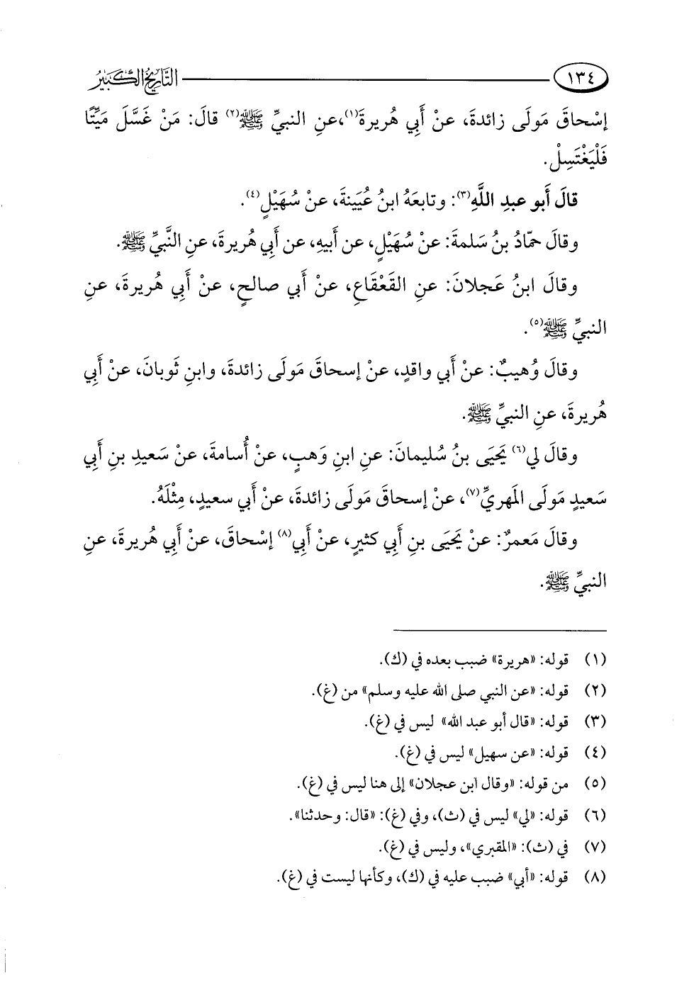 إسْحاقَ مَولَى زائدةَ، عنْ أَبِي هُريرةَ (¬١)، عنِ النبيِّ -صلى اللَّه عليه وسلم- (¬٢) قالَ: مَنْ غَسَّلَ مَيِّتًا فَلْيَغْتَسِلْ.