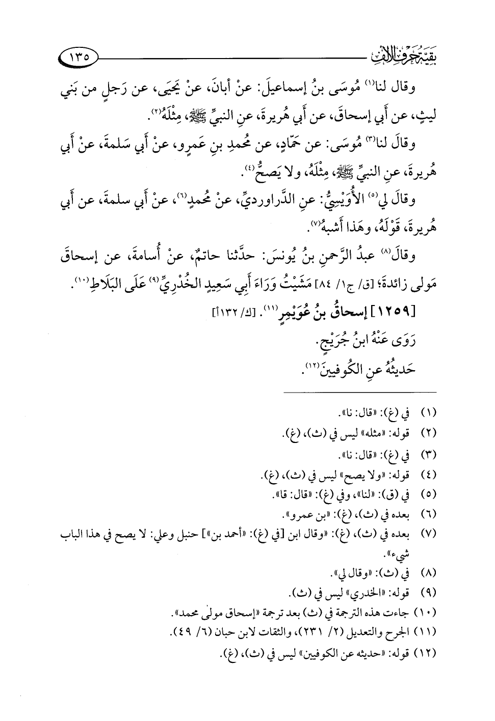 (¬١٢) قوله: "حديثه عن الكوفيين" ليس في (ث)، (غ).