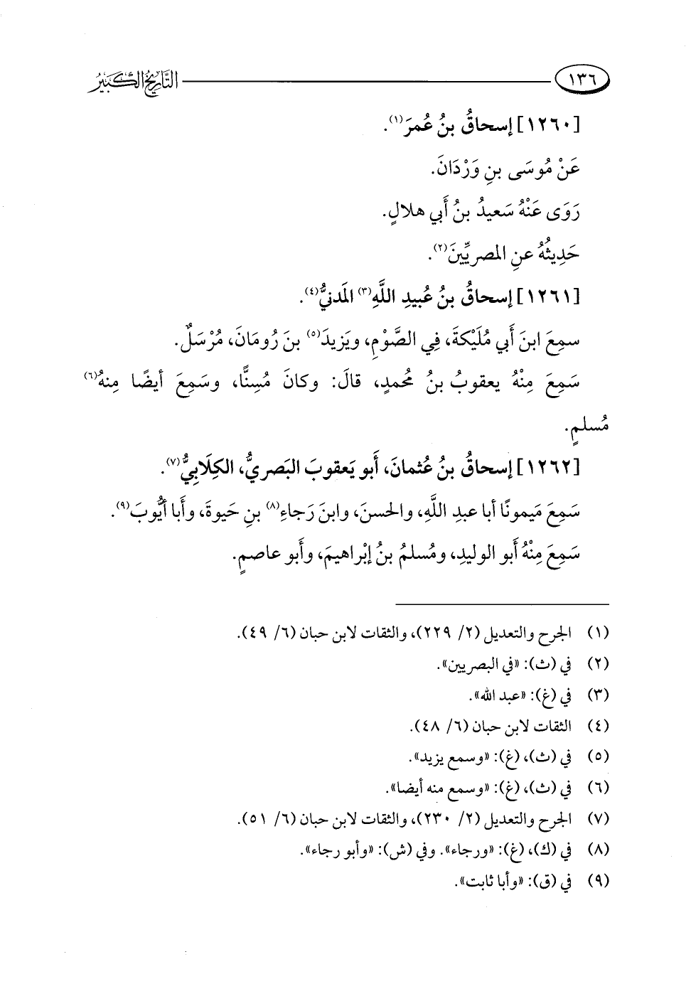 [١٢٦٢] إسحاقُ بنُ عُثمانَ، أَبو يَعقوبَ البَصريُّ، الكِلَابِيُّ (¬٧).