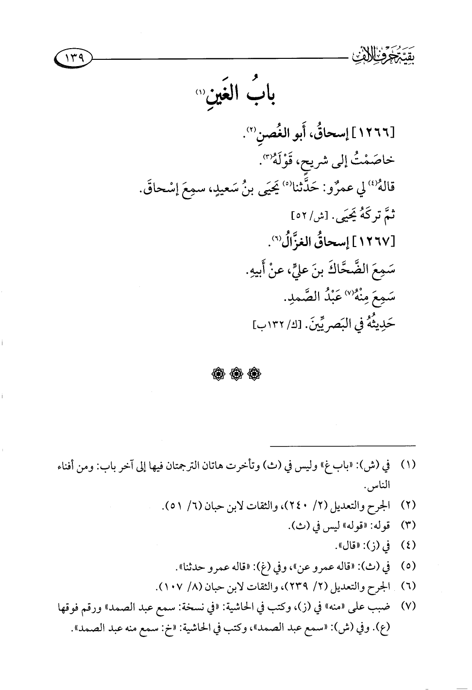 (¬١) في (ش): "باب غ" وليس في (ث) وتأخرت هاتان الترجمتان فيها إلى آخر باب: ومن أفناء الناس.