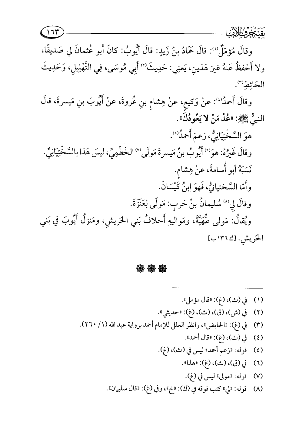 (¬٣) في (غ): "الحايض"، وانظر العلل للإمام أحمد برواية عبد اللَّه (١/ ٢٦٠).