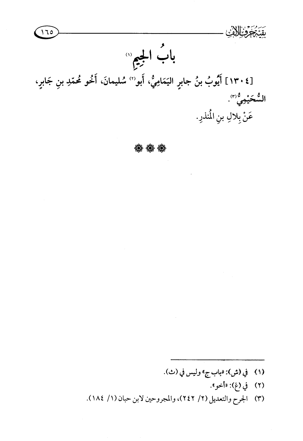 [١٣٠٤] أَيُّوبُ بنُ جابرٍ اليَمَامِيُّ، أَبو (¬٢) سُليمانَ، أَخُو مُحمّدِ بنِ جَابرٍ، السُّحَيْمِيُّ (¬٣).