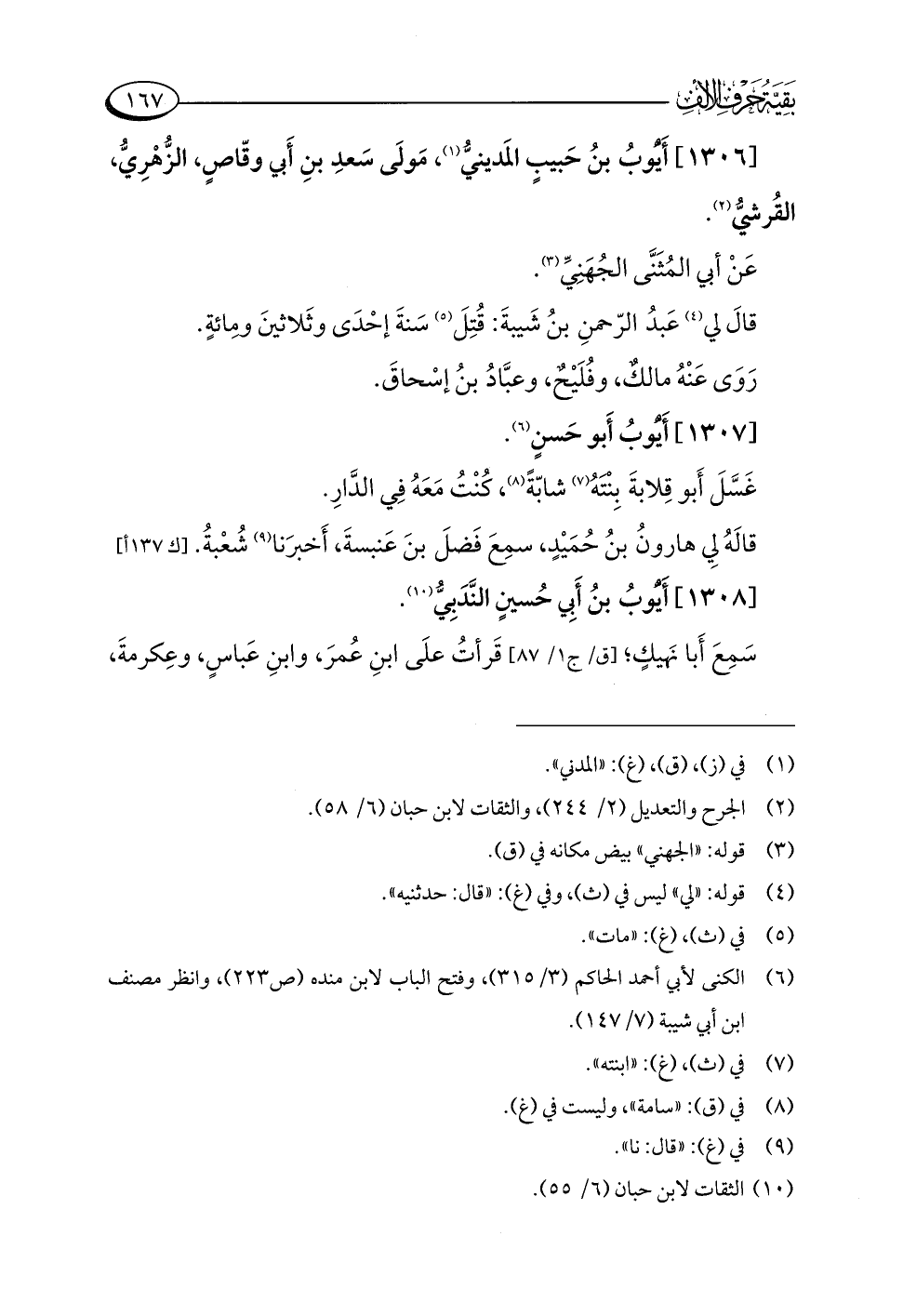 [١٣٠٦] أَيُّوبُ بنُ حَبيبٍ المَدينيُّ (¬١)، مَولَى سَعدِ بنِ أَبي وقّاصٍ، الزُّهْرِيُّ، القُرشيُّ (¬٢).