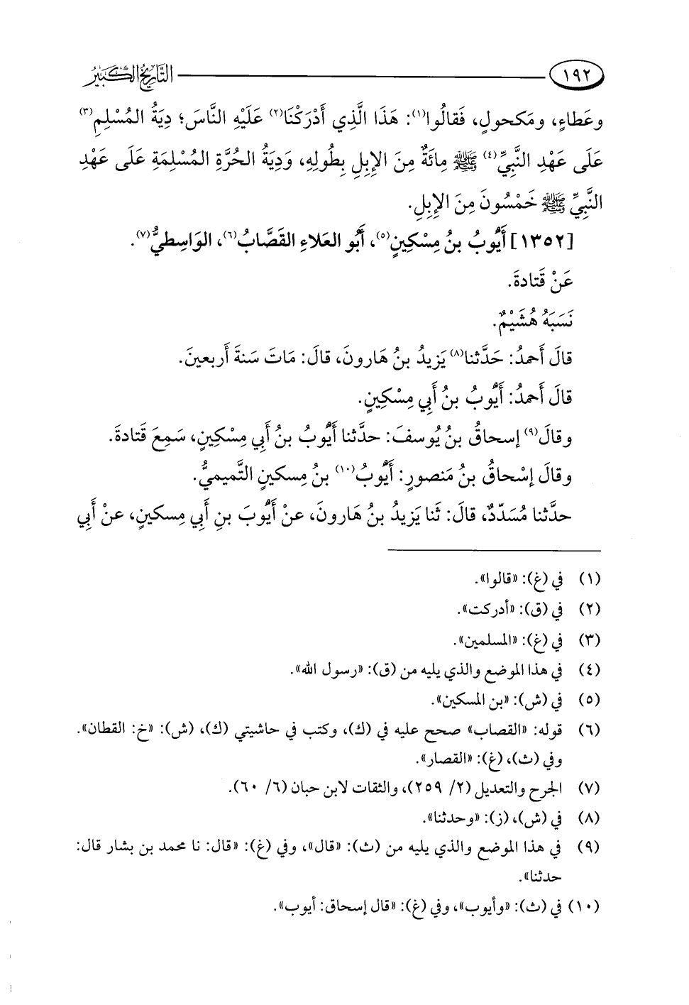 [١٣٥٢] أَيُّوبُ بنُ مِسْكِينٍ (¬٥)، أَبُو العَلاءِ القَصَّابُ (¬٦)، الوَاسِطيُّ (¬٧).