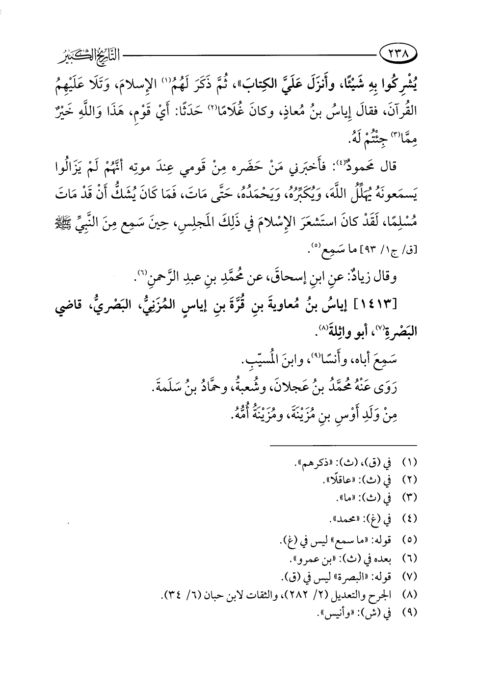[١٤١٣] إياسُ بنُ مُعاويةَ بنِ قُرَّةَ بنِ إياسٍ المُزَنِيُّ، البَصْريُّ، قاضي البَصْرةِ (¬٧)، أَبُو واثِلةَ (¬٨).