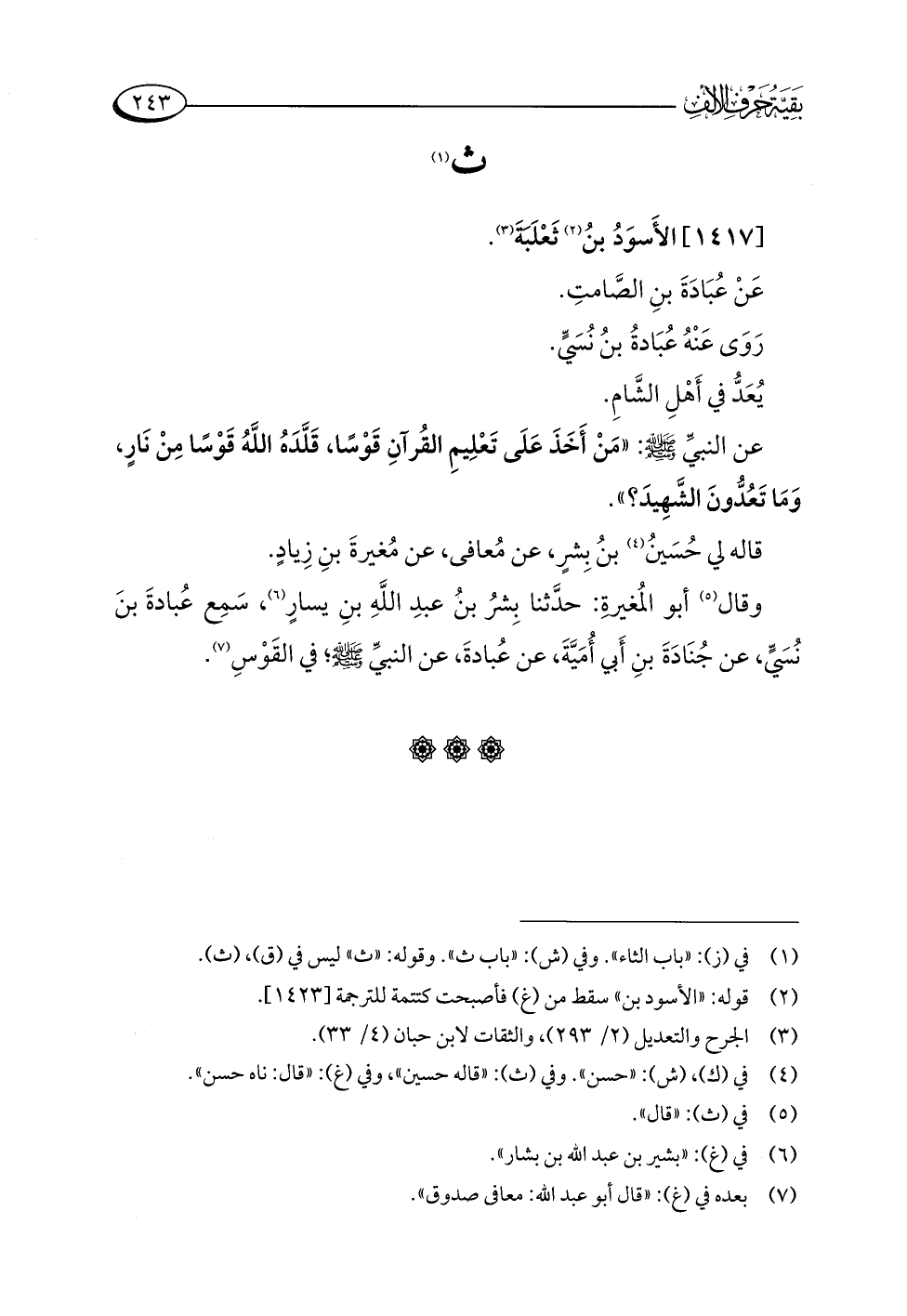 [١٤١٧] الأَسوَدُ بنُ (¬٢) ثَعْلَبَةَ (¬٣).