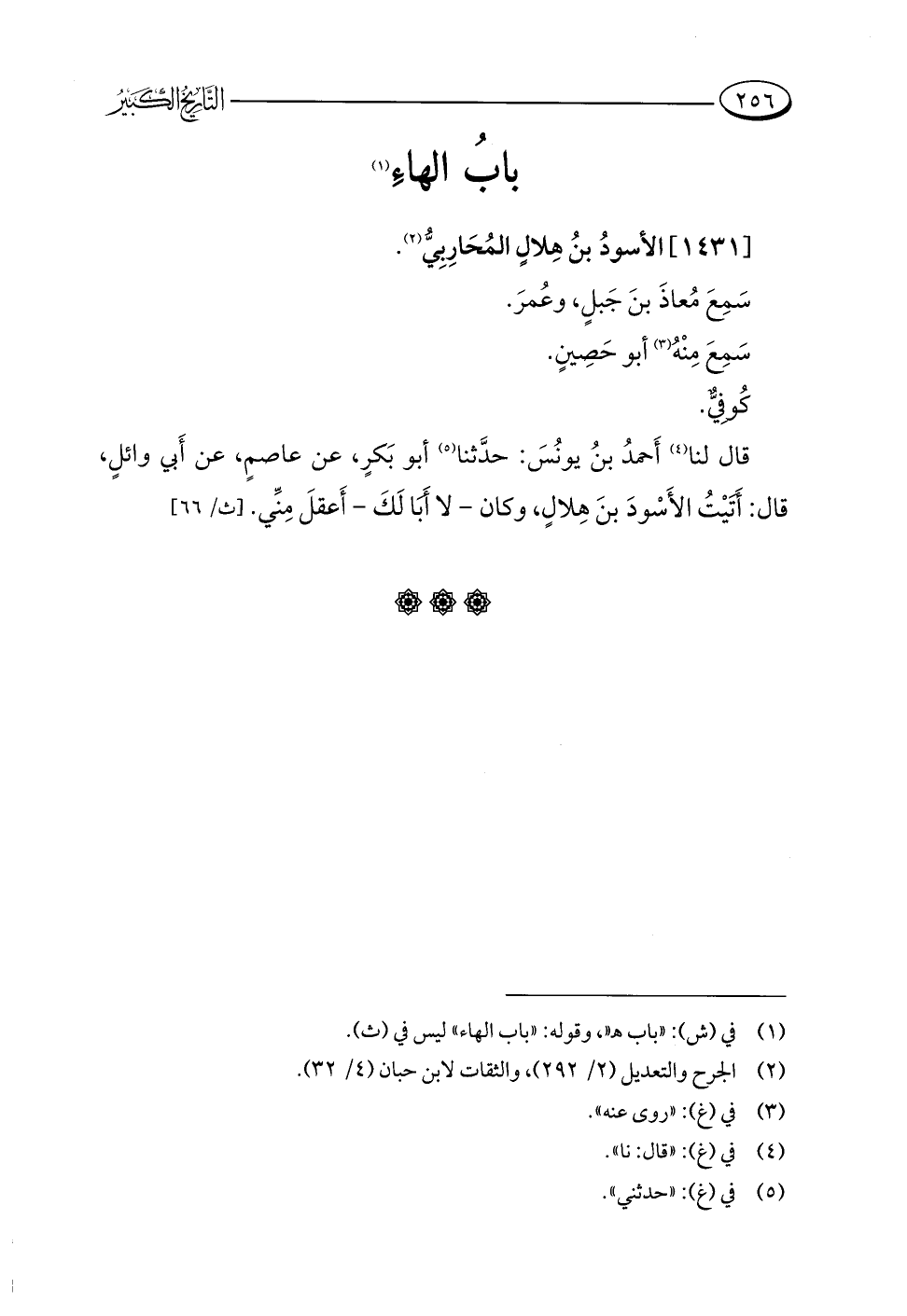[١٤٣١] الأسودُ بنُ هِلالٍ المُحَارِبِيُّ (¬٢).