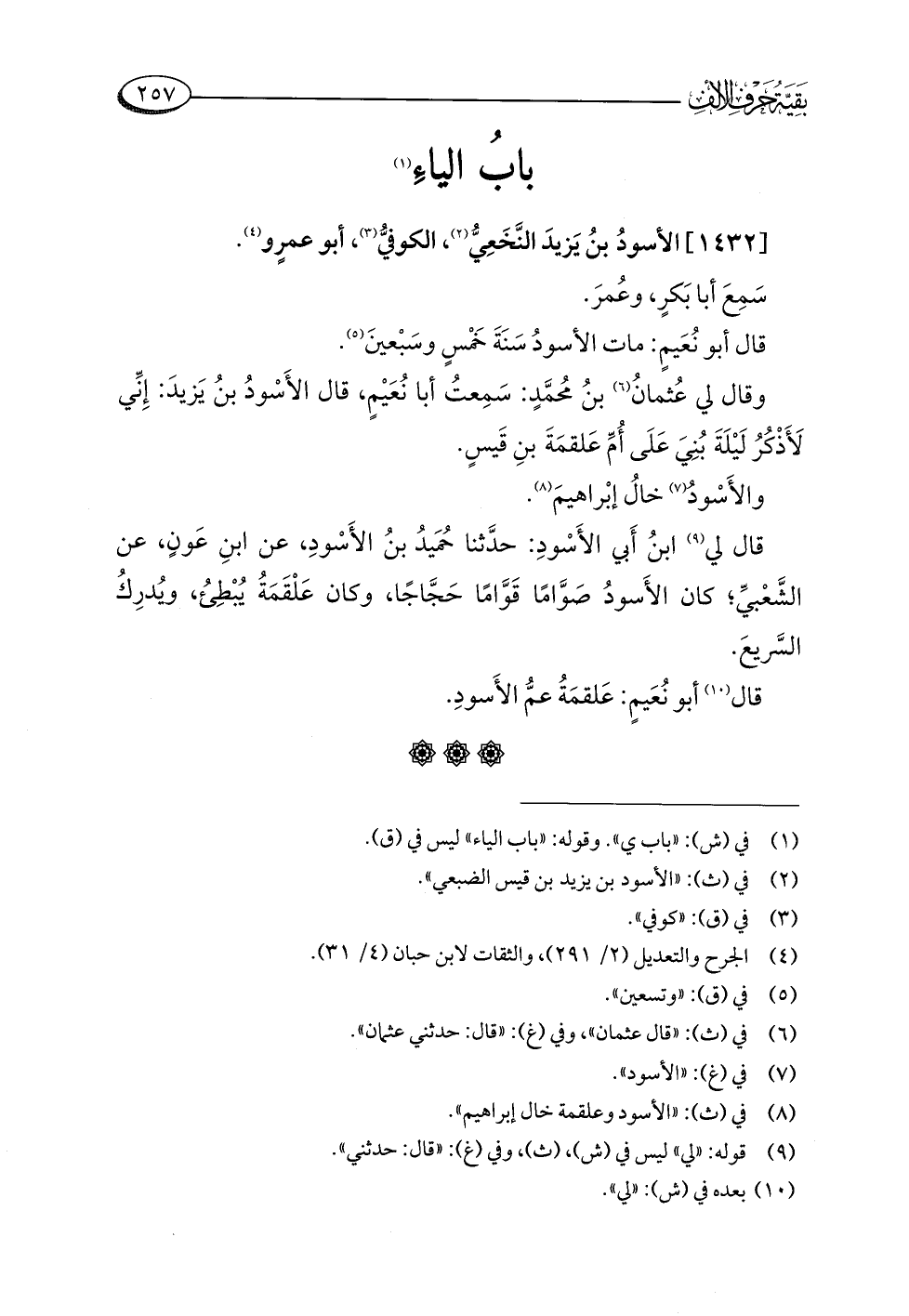 [١٤٣٢] الأسودُ بنُ يَزيدَ النَّخَعِيُّ (¬٢)، الكوفيُّ (¬٣)، أَبُو عمرٍو (¬٤).