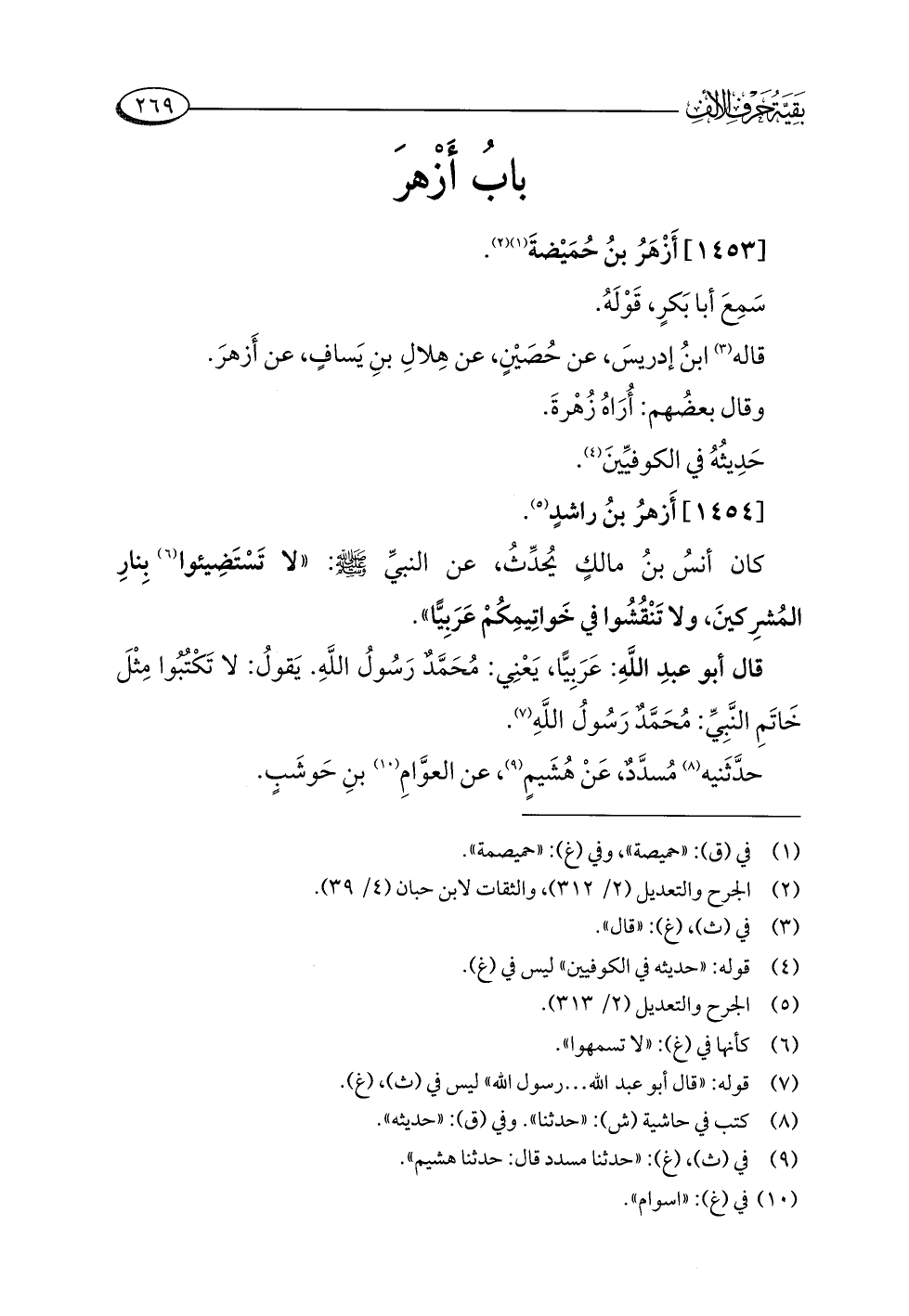 [١٤٥٣] أَزْهَرُ بنُ حُمَيْضةَ (¬١) (¬٢).