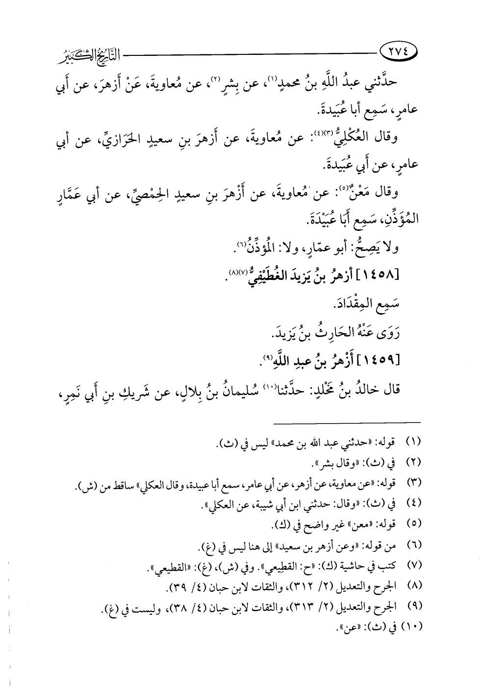 (¬٣) قوله: "عن معاوية، عن أزهر، عن أبي عامر، سمع أبا عبيدة، وقال العكلي" ساقط من (ش).