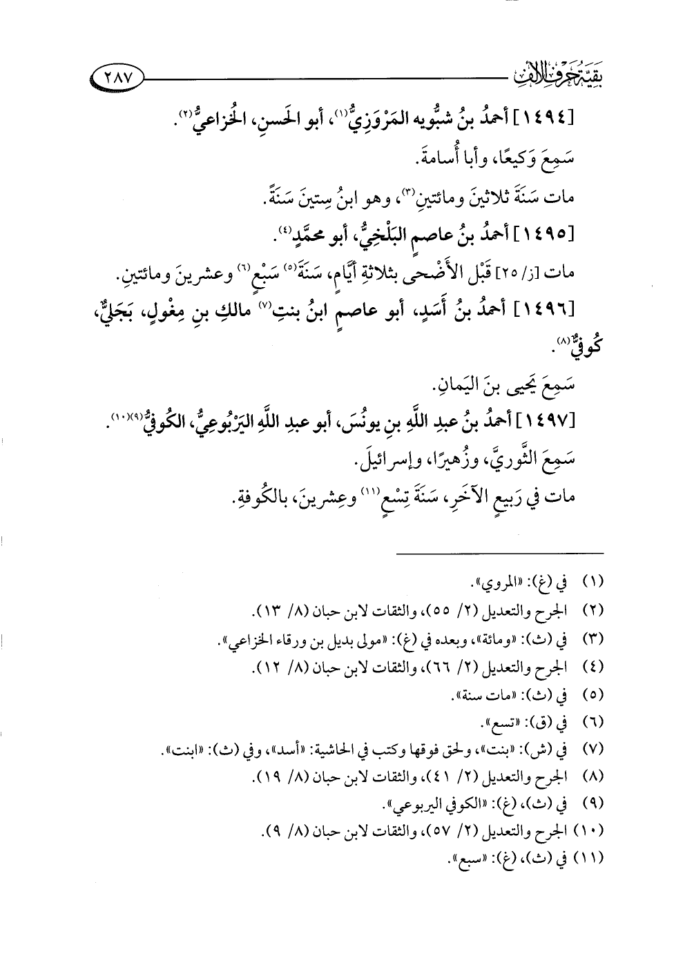 (¬١٠) الجرح والتعديل (٢/ ٥٧)، والثقات لابن حبان (٨/ ٩).