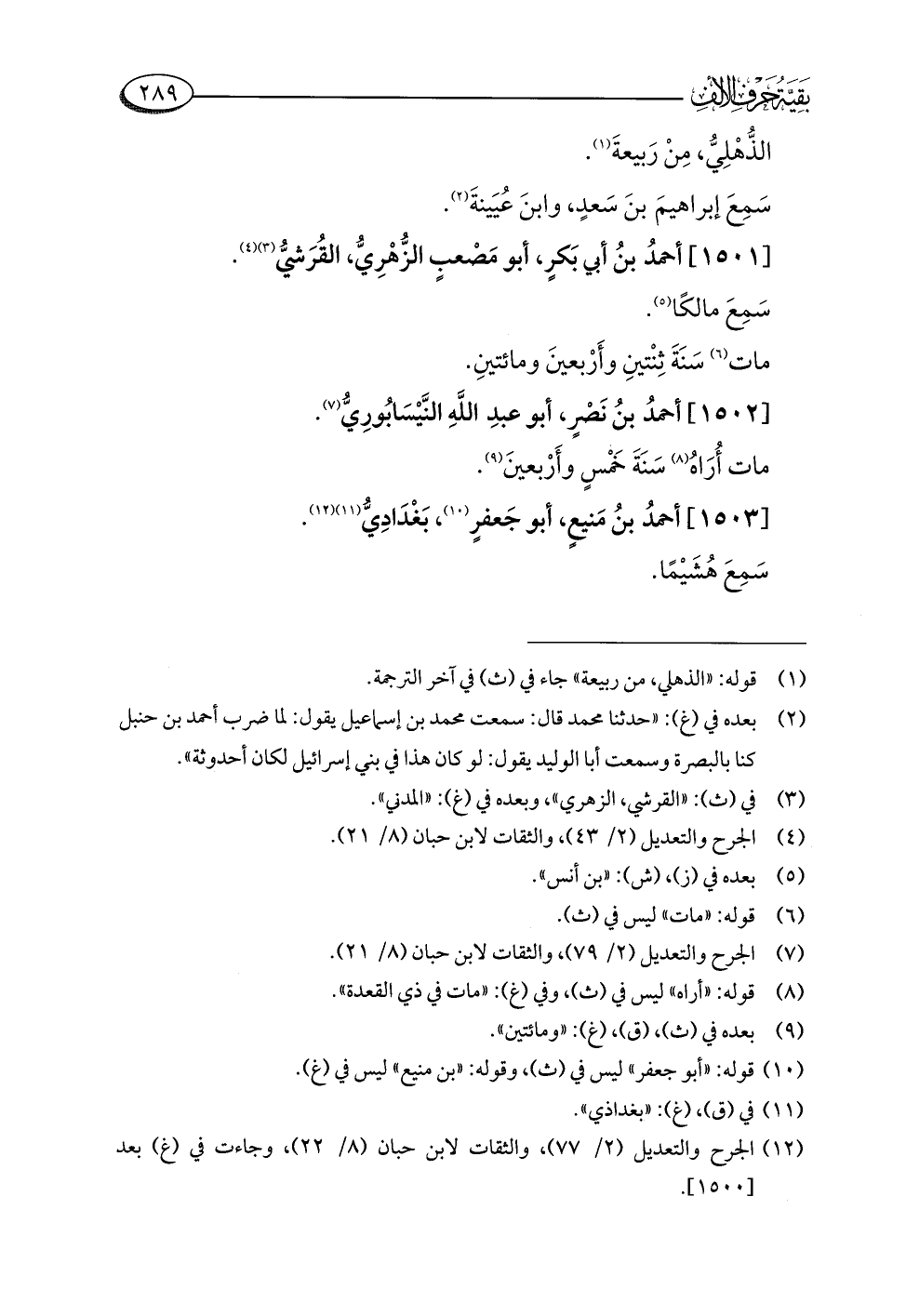 (¬١٢) الجرح والتعديل (٢/ ٧٧)، والثقات لابن حبان (٨/ ٢٢)، وجاءت في (غ) بعد [١٥٠٠].