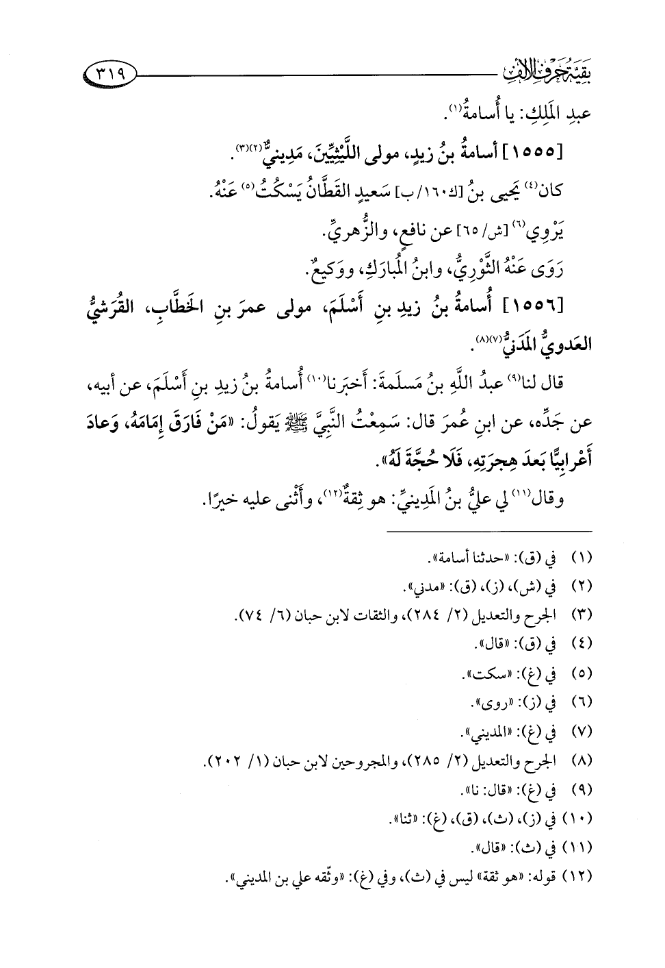 [١٥٥٦] أُسامةُ بنُ زيدِ بنِ أَسْلَمَ، مولى عمرَ بنِ الخَطَّابِ، القُرَشيُّ العَدويُّ المَدَنيُّ (¬٧) (¬٨).
