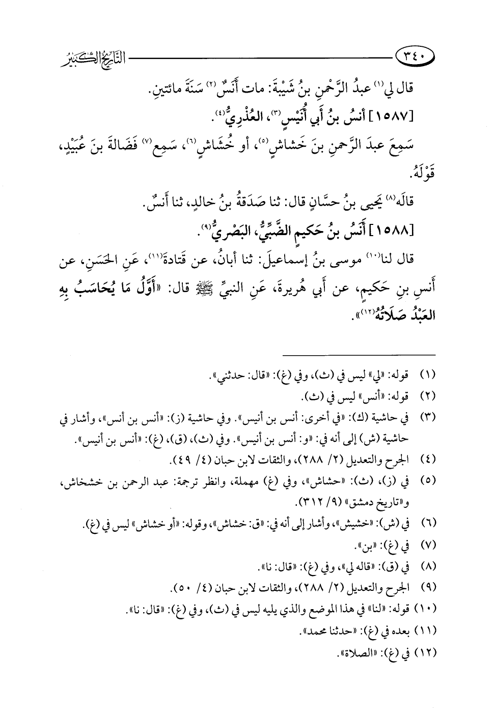 قال لنا (¬١٠) موسى بنُ إسماعيلَ: ثنا أبانُ، عن قَتادةَ (¬١١)، عَنِ الحَسَنِ، عن أَنسِ بنِ حَكيمٍ، عن أَبي هُريرةَ، عَنِ النبيِّ -صلى اللَّه عليه وسلم- قال: "أَوَّلُ مَا يُحَاسَبُ بِهِ العَبْدُ صَلَاتُهُ (¬١٢) ".