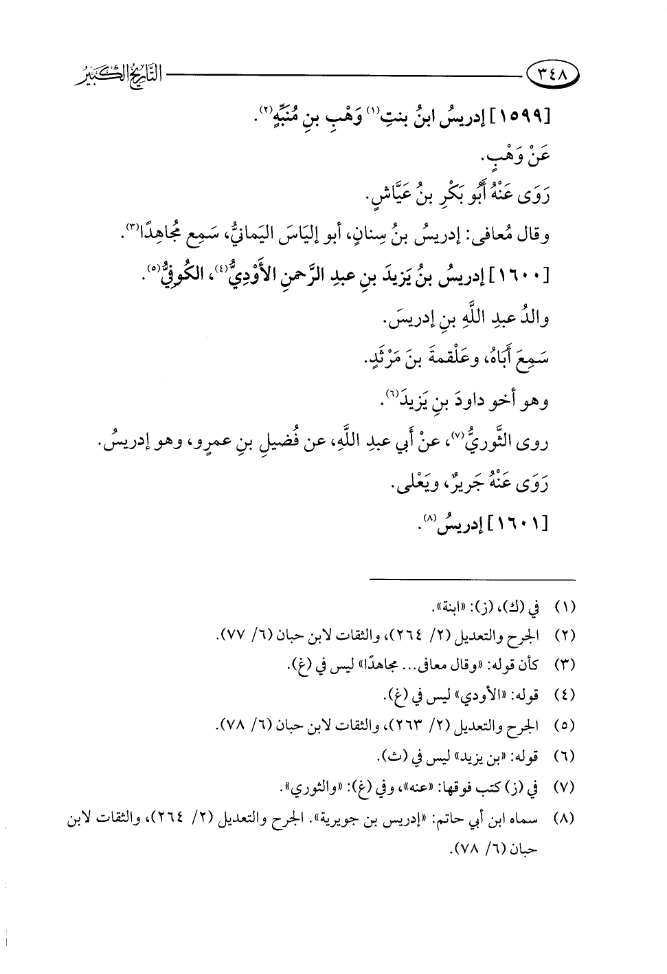 (¬٨) سماه ابن أبي حاتم: "إدريس بن جويرية". الجرح والتعديل (٢/ ٢٦٤)، والثقات لابن حبان (٦/ ٧٨).