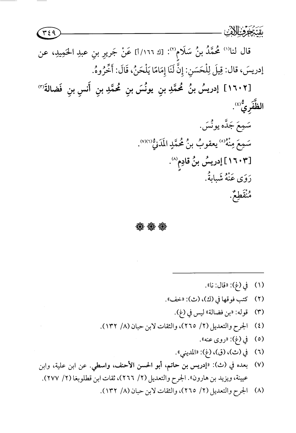 (¬٧) بعده في (ث): "إدريس بن حاتم، أبو الحسن الأحنف، واسطي. عن ابن علية، وابن عيينة، ويزيد بن هارون". الجرح والتعديل (٢/ ٢٦٦)، ثقات ابن قطلوبغا (٢/ ٢٧٧).