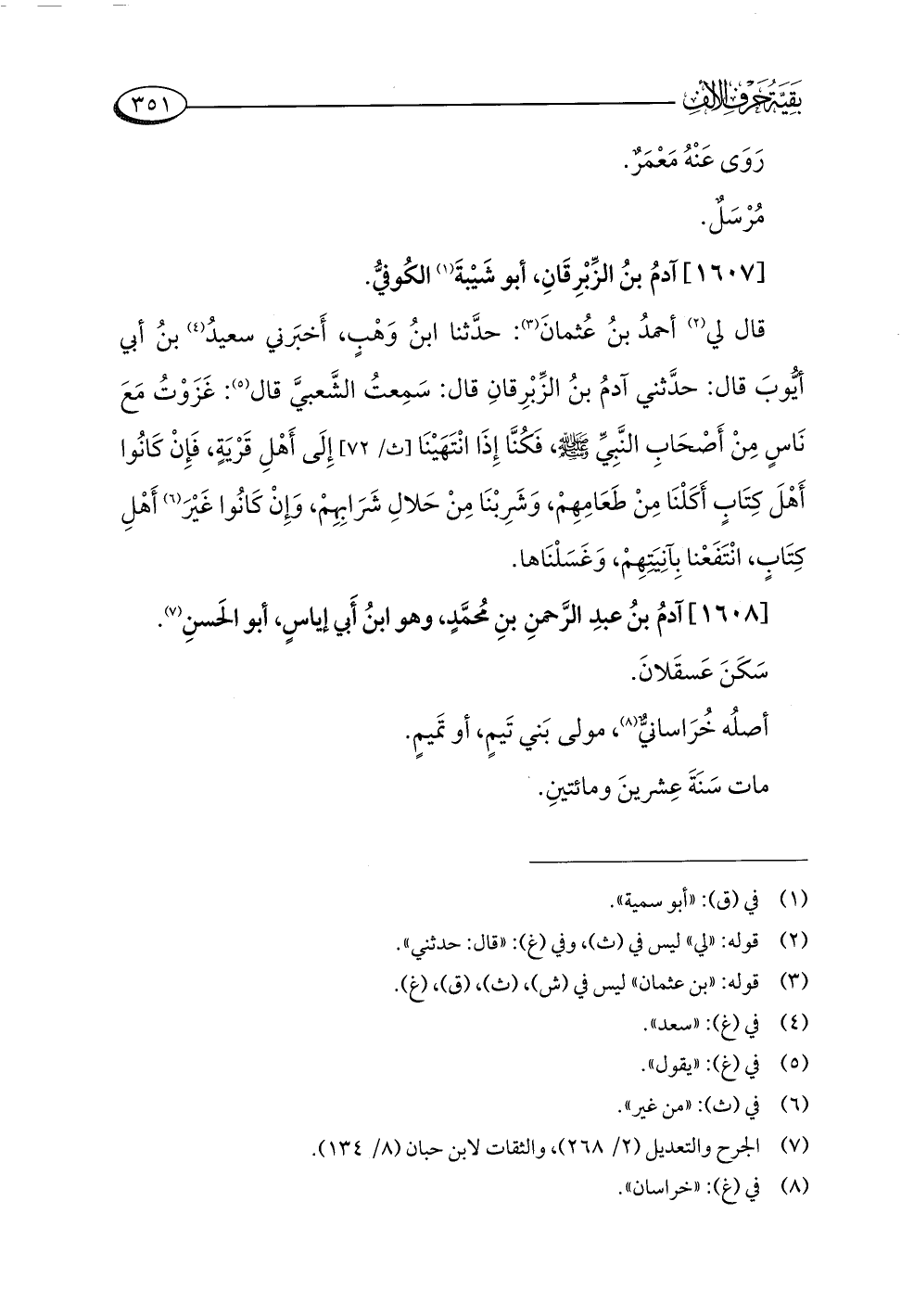 [١٦٠٨] آدمُ بنُ عبدِ الرَّحمنِ بنِ مُحمَّدٍ، وهو ابنُ أَبي إياسٍ، أبو الحَسنِ (¬٧).