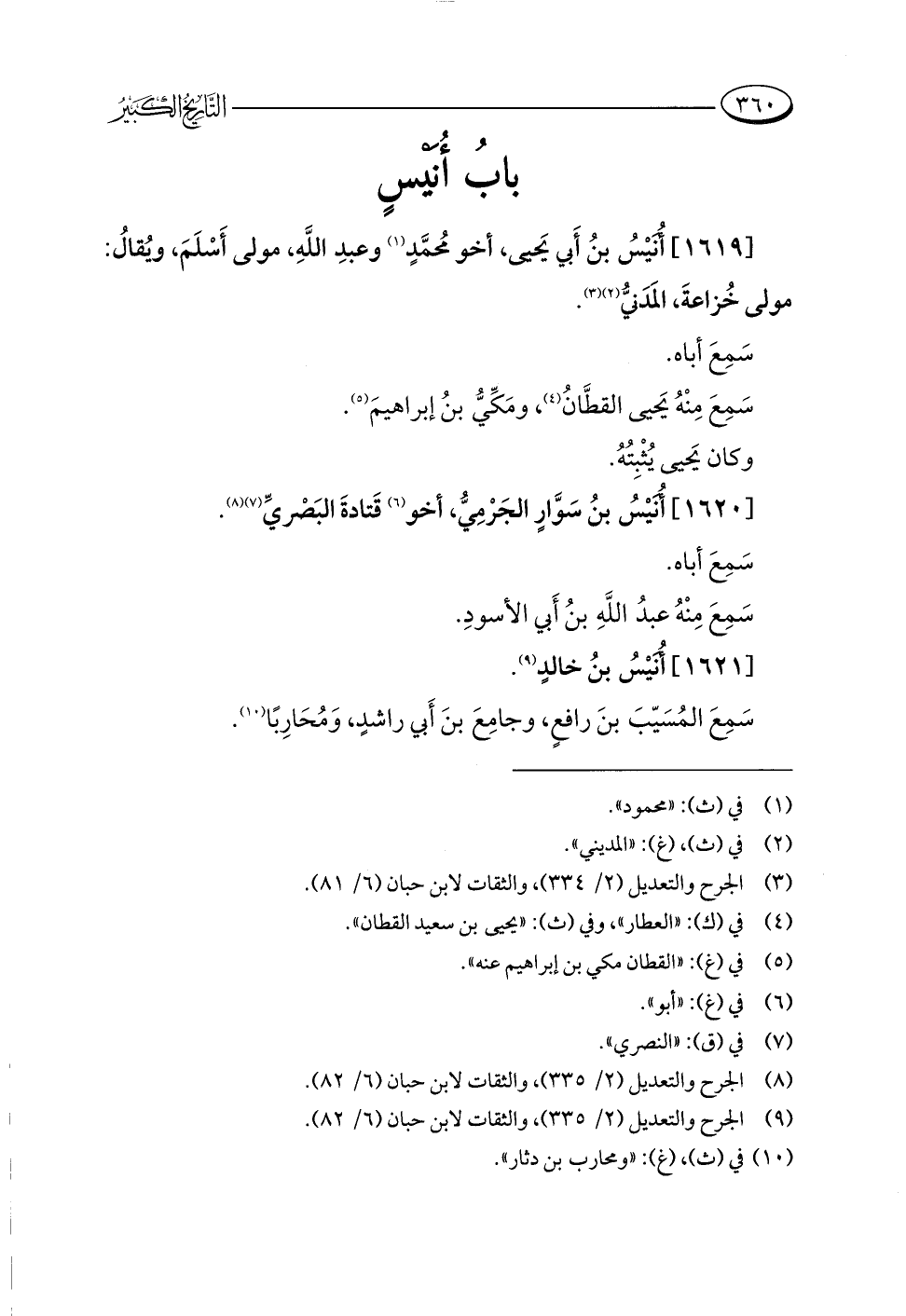 [١٦١٩] أُنَيْسُ بنُ أَبي يَحيى، أخو مُحمَّدٍ (¬١) وعبدِ اللَّهِ، مولى أَسْلَمَ، ويُقالُ: مولى خُزاعةَ، المَدَنيُّ (¬٢) (¬٣).
