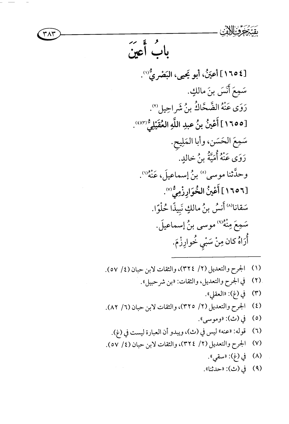 [١٦٥٥] أَعْينُ بنُ عبدِ اللَهِ العُقَيْلِيُّ (¬٣) (¬٤).
