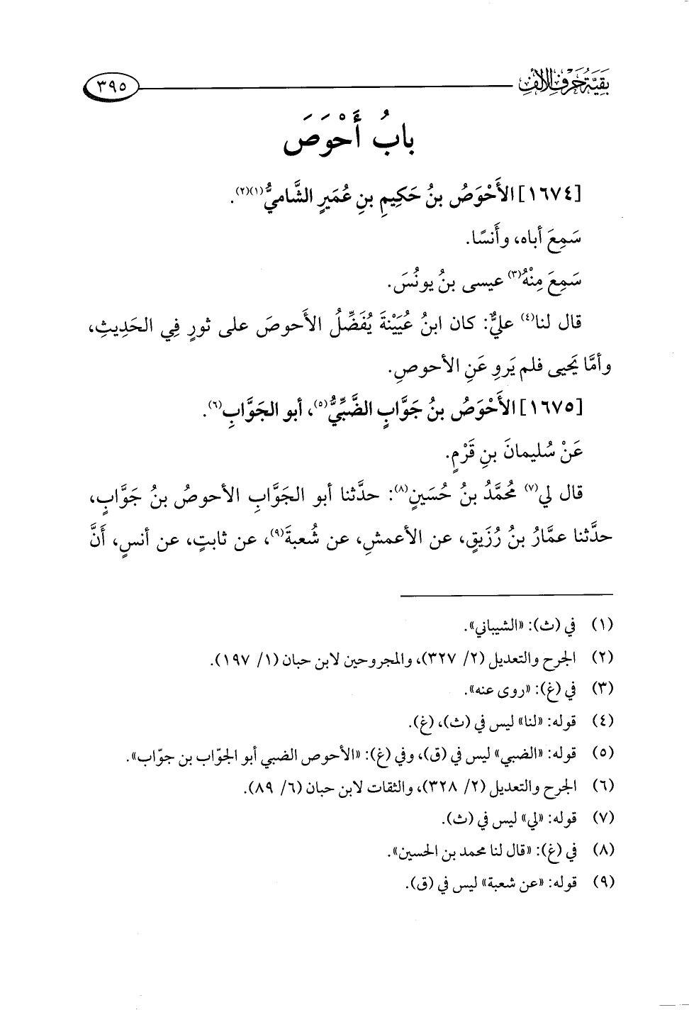 (¬٥) قوله: "الضبي" ليس في (ق)، وفي (غ): "الأحوص الضبي أبو الجوّاب بن جوّاب".