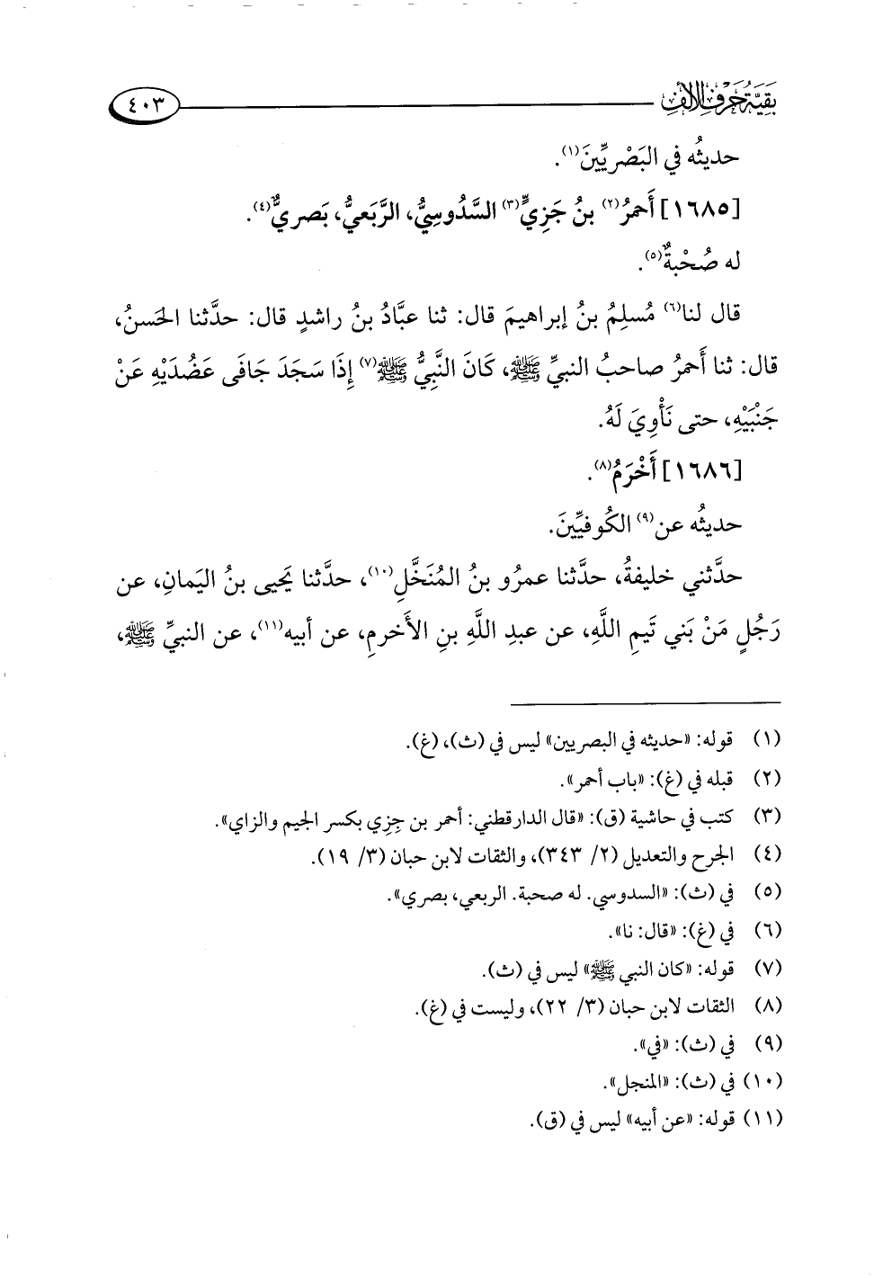 (¬٣) كتب في حاشية (ق): "قال الدارقطني: أحمر بن جِزِي بكسر الجيم والزاي".