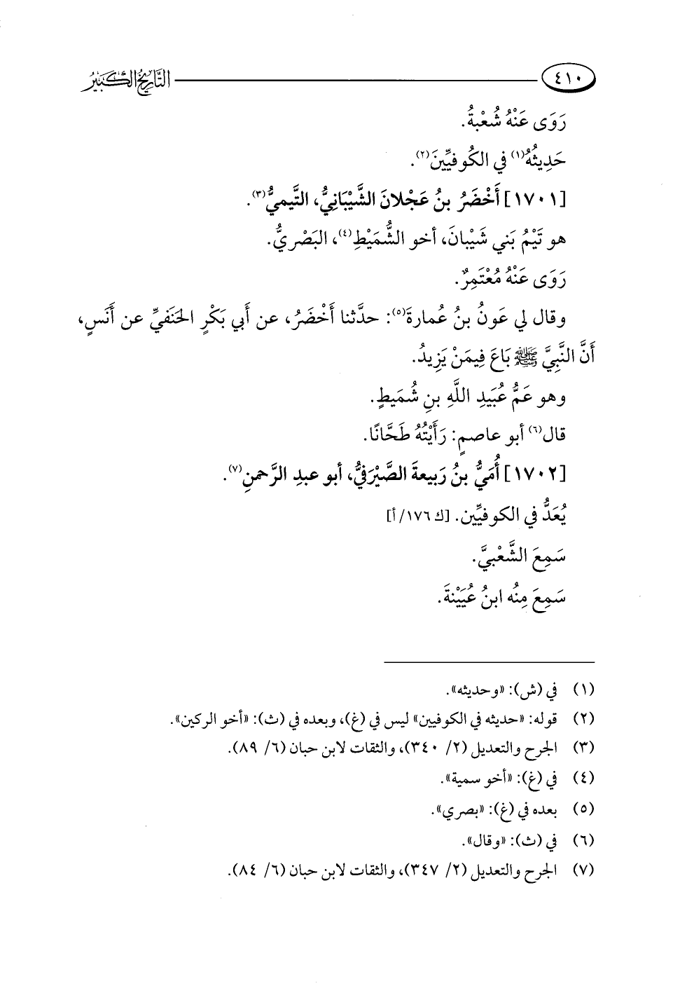 (¬٧) الجرح والتعديل (٢/ ٣٤٧)، والثقات لابن حبان (٦/ ٨٤).