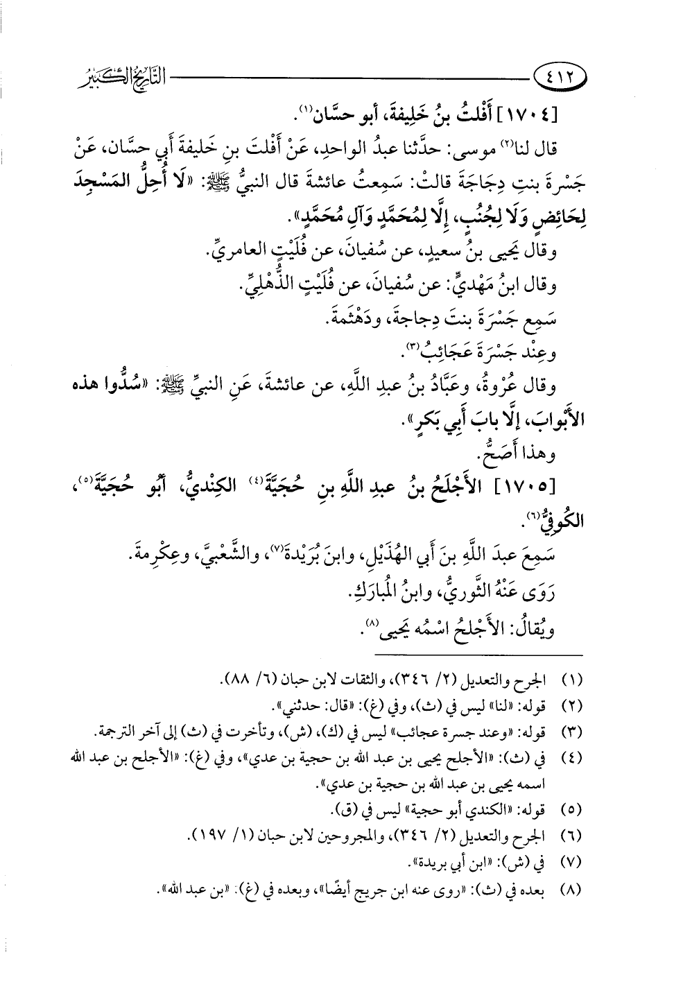 (¬٤) في (ث): "الأجلح يحيى بن عبد اللَّه بن حجية بن عدي"، وفي (غ): "الأجلح بن عبد اللَّه اسمه يحيى بن عبد اللَّه بن حجية بن عدي".