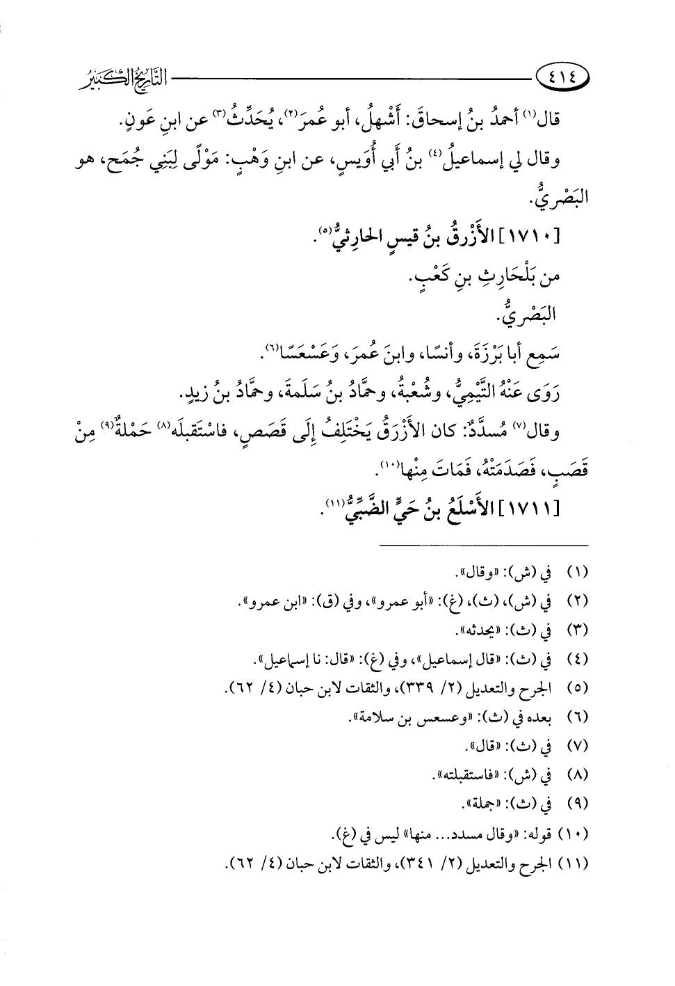 (¬١١) الجرح والتعديل (٢/ ٣٤١)، والثقات لابن حبان (٤/ ٦٢).