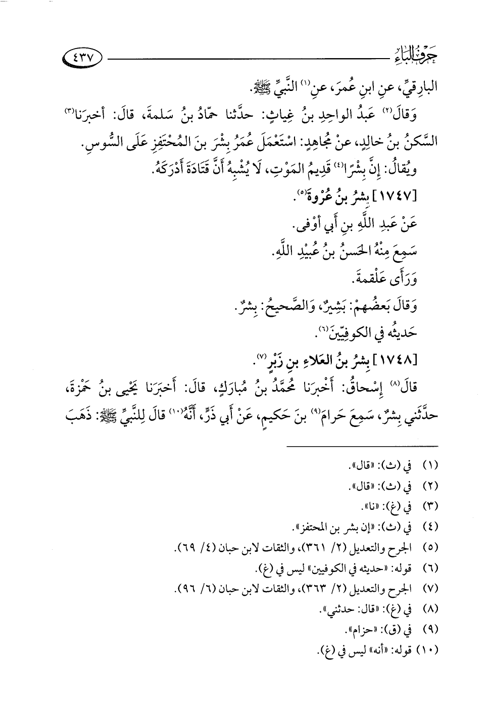 (¬٧) الجرح والتعديل (٢/ ٣٦٣)، والثقات لابن حبان (٦/ ٩٦).
