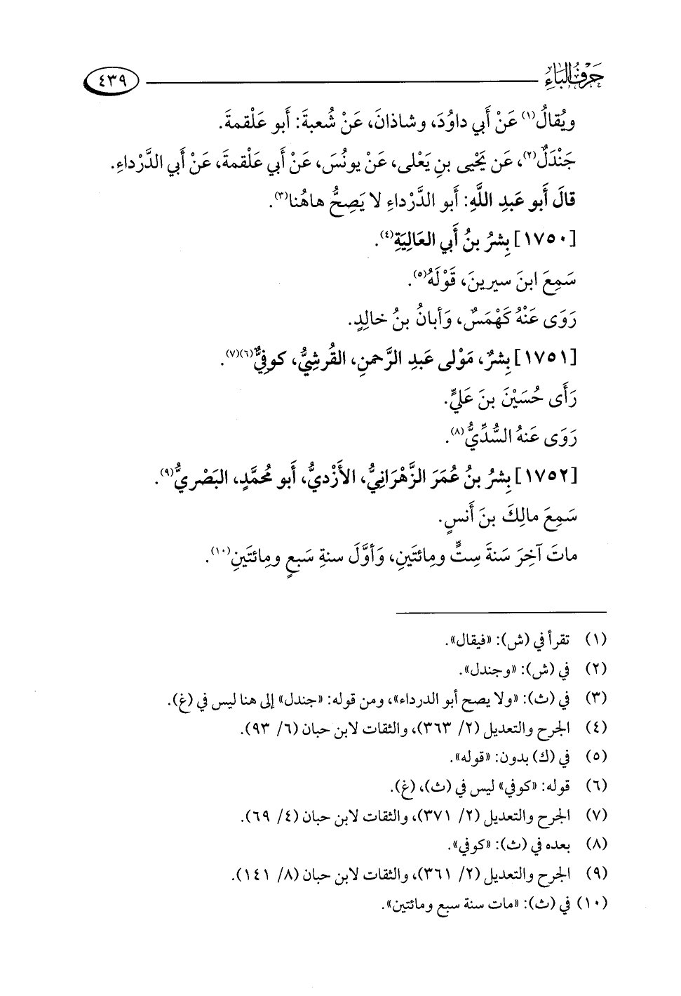 [١٧٥١] بِشرٌ، مَوْلى عَبدِ الرَّحمنِ، القُرشِيُّ، كوفِيٌّ (¬٦) (¬٧).