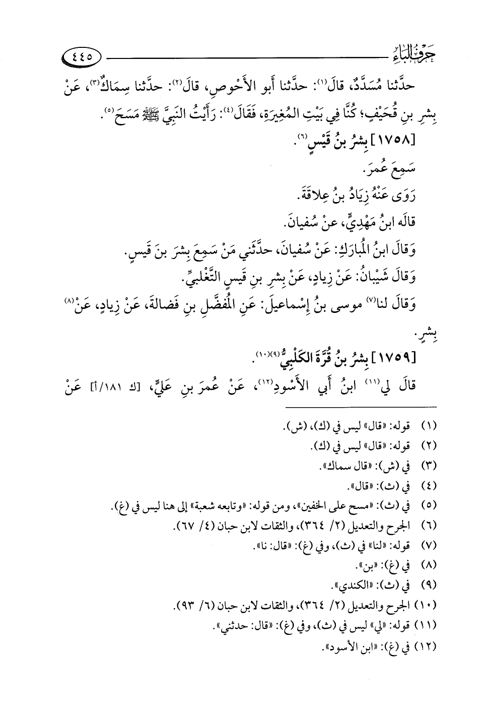 (¬١٠) الجرح والتعديل (٢/ ٣٦٤)، والثقات لابن حبان (٦/ ٩٣).