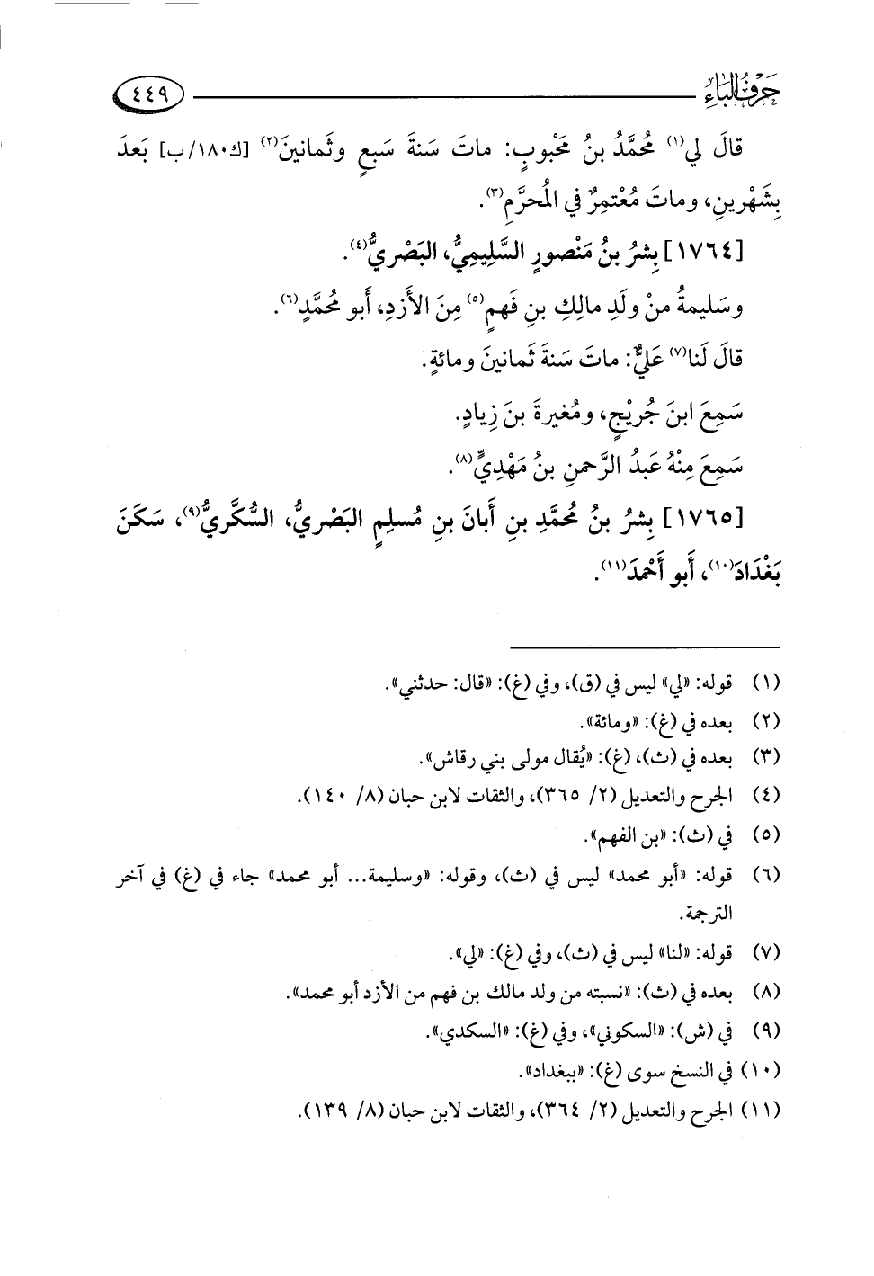 [١٧٦٥] بِشرُ بنُ مُحمَّدِ بنِ أَبانَ بنِ مُسلِمٍ البَصْريُّ، السُّكَّريُّ (¬٩)، سَكَنَ بَغْدَادَ (¬١٠)، أَبو أَحْمدَ (¬١١).