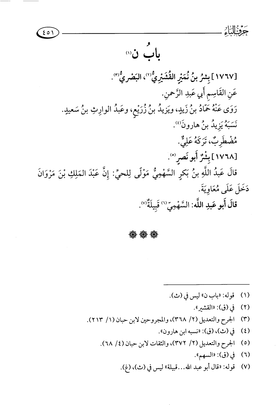 [١٧٦٧] بِشرُ بنُ نُمَيْرٍ القُشَيْرِيُّ (¬٢)، البَصْريُّ (¬٣).