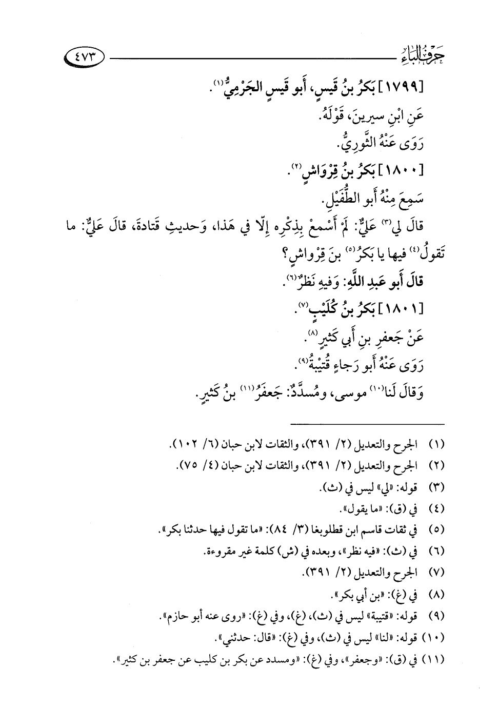 (¬٥) في ثقات قاسم ابن قطلوبغا (٣/ ٨٤): "ما تقول فيها حدثنا بكر".