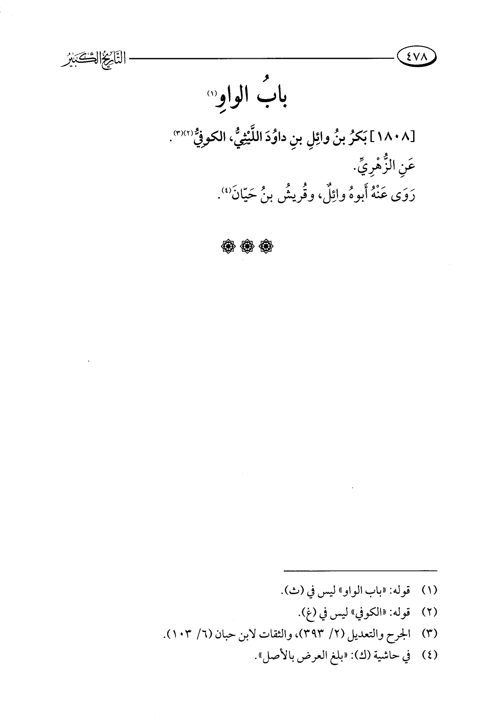 [١٨٠٨] بَكرُ بنُ وائِلِ بنِ داوُدَ اللَّيْثِيُّ، الكوفِيُّ (¬٢) (¬٣).