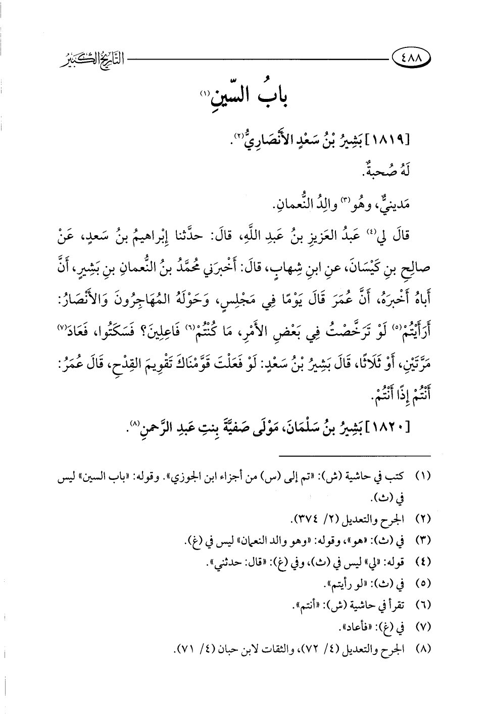 [١٨٢٠] بَشِيرُ بنُ سَلْمَانَ، مَوْلَى صَفيَّةَ بِنتِ عَبدِ الرَّحمنِ (¬٨).
