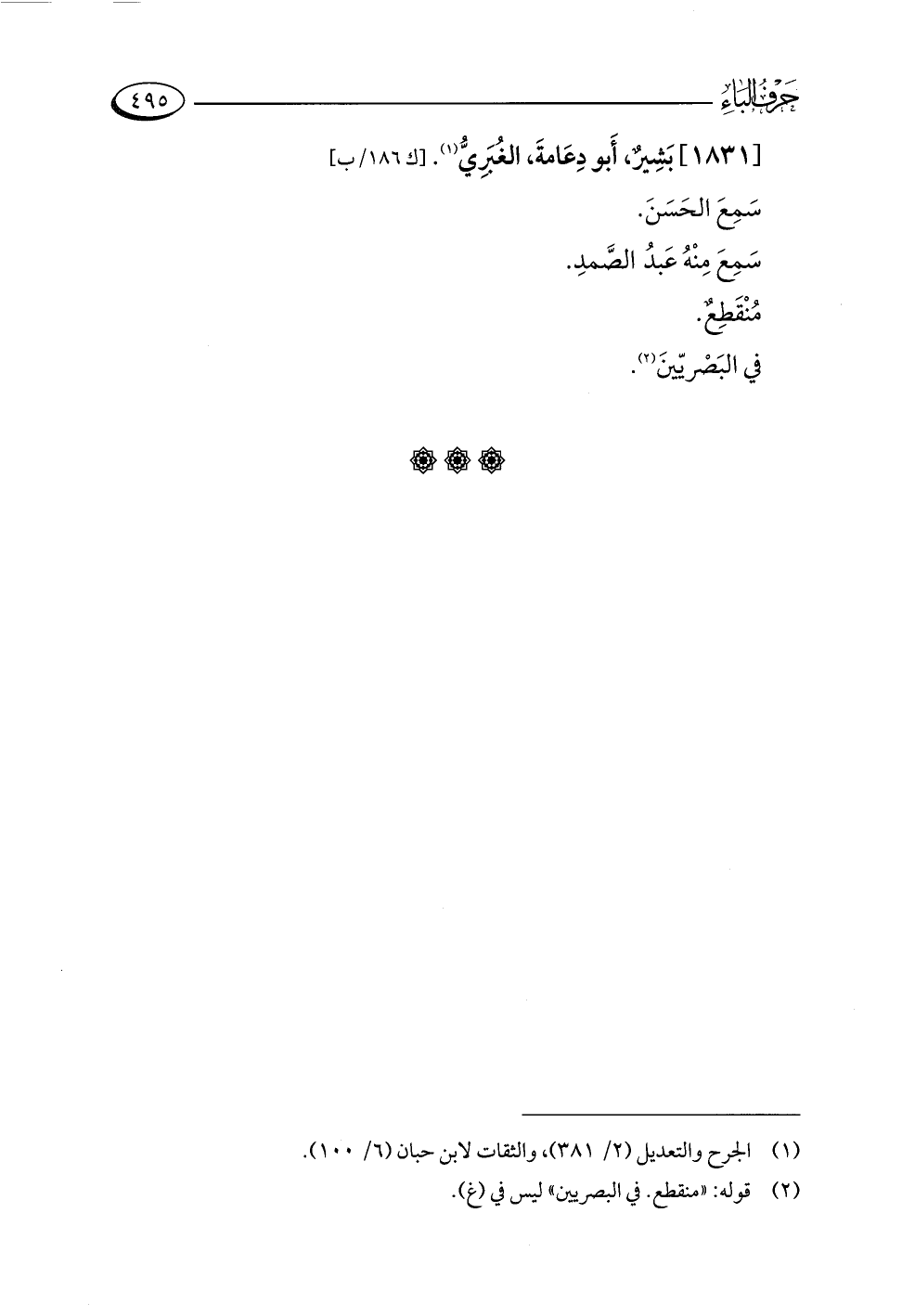 (¬١) الجرح والتعديل (٢/ ٣٨١)، والثقات لابن حبان (٦/ ١٥٠).
