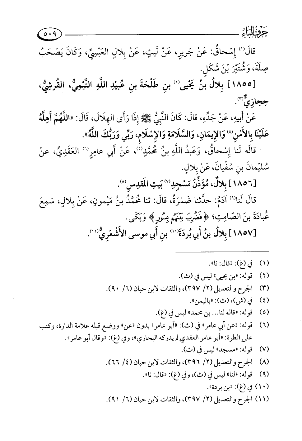 [١٨٥٦] بِلالٌ، مُؤَذِّنُ مَسْجِدِ (¬٧) بَيتِ المَقدِسِ (¬٨).