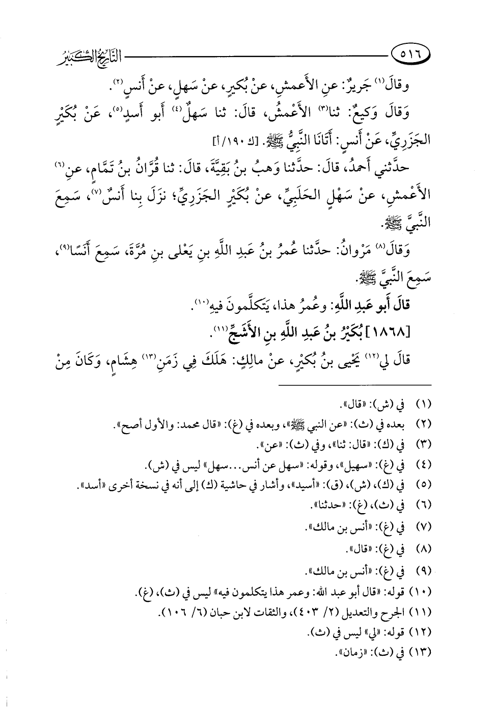 (¬١٠) قوله: "قال أبو عبد اللَّه: وعمر هذا يتكلمون فيه"؛ ليس في (ث)، (غ).