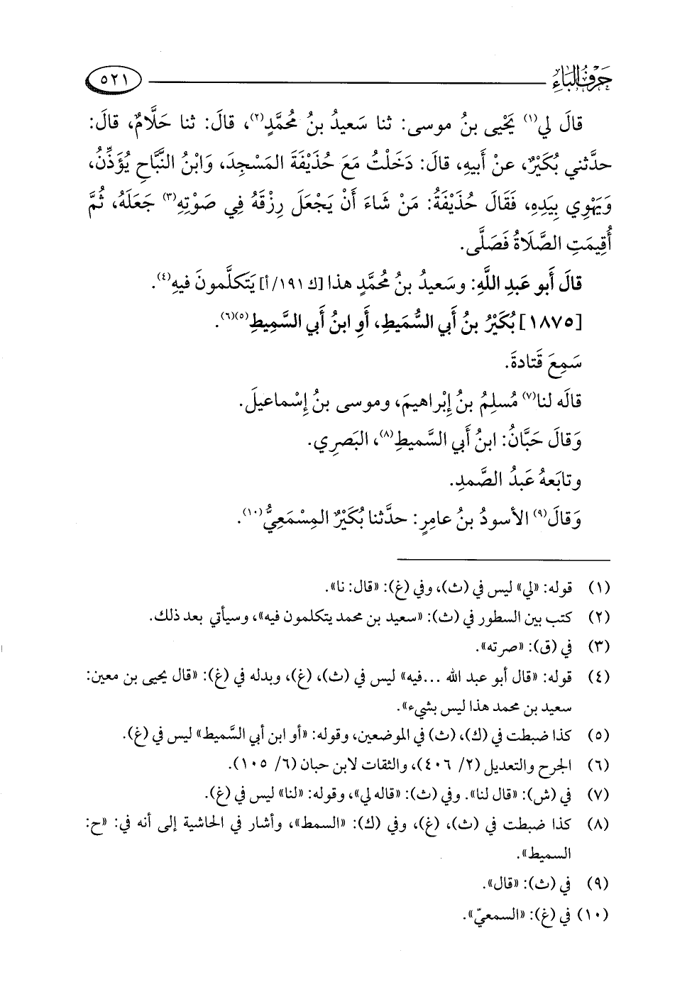 (¬٢) كتب بين السطور في (ث): "سعيد بن محمد يتكلمون فيه"، وسيأتي بعد ذلك.