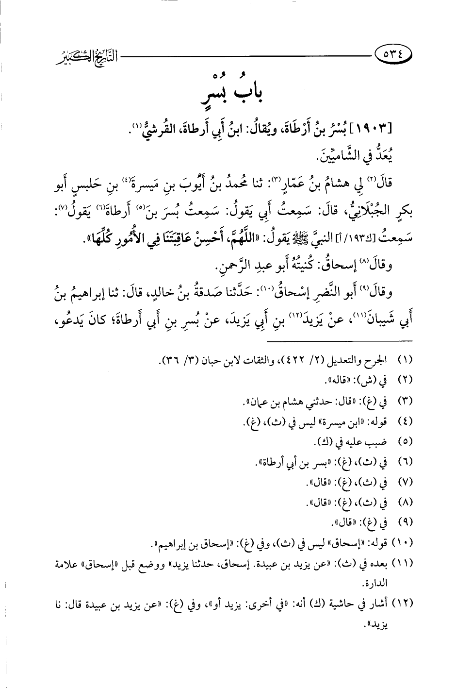 وقالَ (¬٩) أَبو النَّضرِ إسْحاقُ (¬١٠): حَدَّثنا صَدقةُ بنُ خالدٍ، قَالَ: ثنا إبراهيمُ بنُ أَبي شَيبانَ (¬١١)، عنْ يَزيدَ (¬١٢) بنِ أَبِي يَزيدَ، عنْ بُسرِ بنِ أَبي أَرطاةَ، كانَ يَدعُو،