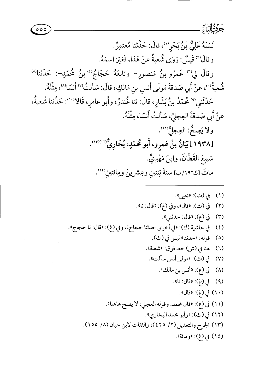 [١٩٣٨] بَيَانُ بنُ عَمرٍو، أَبو مُحمّدٍ، بُخارِيٌّ (¬١٢) (¬١٣).